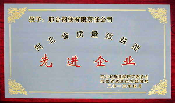 5月27日,邢鋼榮獲2012年“河北省質(zhì)量效益型先進(jìn)企業(yè)”稱號。