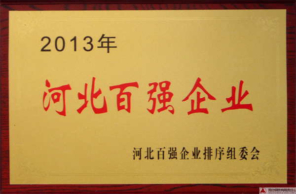 2013年7月20日,邢鋼榮獲2013年“河北省百強(qiáng)企業(yè)”榮譽(yù)稱號。
