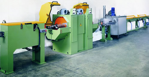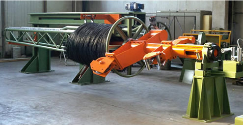 1、推進(jìn)裝置將盤條推進(jìn)至工作位置,經(jīng)放線機(jī)后進(jìn)入到同步裝置,同步裝置的滑輪可以累積大約2米的盤條,用于在萬一發(fā)生纏繞時(shí)停止生產(chǎn)線。