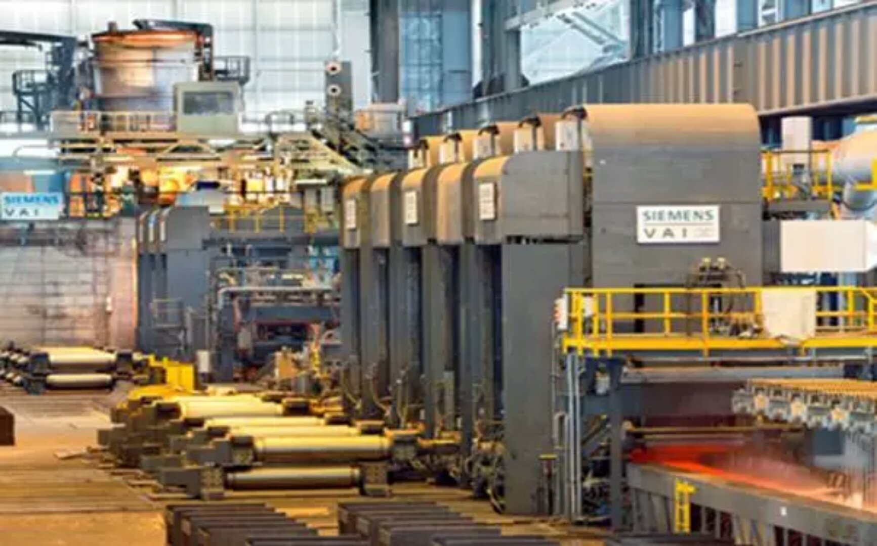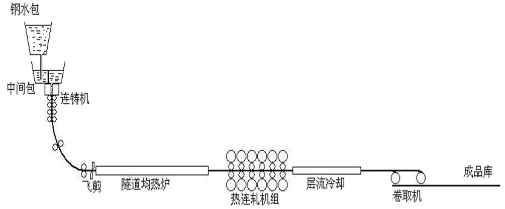 注:從左至右分別為:連鑄機、均熱爐、熱連軋機組、層流冷卻。