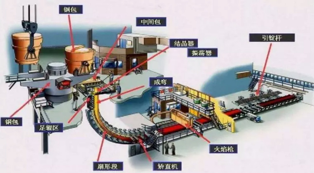 連鑄:連續(xù)鑄鋼(英文Continuous Steel Casting)的簡稱,可實現(xiàn)不間斷連續(xù)生產。與模鑄相比,連鑄技術具有提高金屬收得率、改善勞動環(huán)境、自動化程度高、鑄坯質量好等顯著優(yōu)勢,現(xiàn)目前大多數(shù)鋼廠都采用連鑄澆注,可生產方坯、圓坯、板坯等。