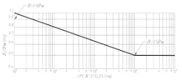 對很多金屬已經(jīng)進(jìn)行了大量的疲勞試驗。從這些試驗中,已經(jīng)開發(fā)出拉伸強(qiáng)度和循環(huán)次數(shù)的曲線圖。鍛鋼的一個例子如圖1所示。 在這個對數(shù)記錄圖上的垂直坐標(biāo)標(biāo)示出了施加的應(yīng)力與鋼的極限拉應(yīng)力“SU”的比例,而橫坐標(biāo)是應(yīng)力循環(huán)至失效的次數(shù)。SN曲線的左側(cè)表明,在高循環(huán)載荷下的鋼件產(chǎn)生的應(yīng)力占了拉伸強(qiáng)度的較大比例,在一定數(shù)量的循環(huán)之后就會失效。SN曲線的右側(cè)表明,如果循環(huán)應(yīng)力保持在可定義的極限以下,則部件將具有無限的壽命。曲線還告訴我們,如果一個鋼件只有一個加載周期,其應(yīng)力大于其拉伸強(qiáng)度,則該鋼件將失效(如當(dāng)一個小螺栓如果擰緊時斷開)。如果施加的應(yīng)力是拉伸強(qiáng)度的90%或更多,它也會在小于一千個周期內(nèi)失效。但如果應(yīng)力保持在抗拉強(qiáng)度的一半以下,它就不會疲勞。