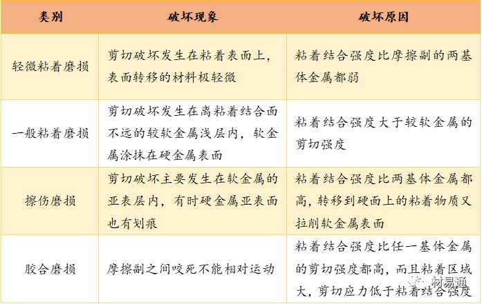 當摩擦副相對滑動時, 由于粘著效應所形成結點發(fā)生剪切斷裂,被剪切的材料或脫落成磨屑,或由一個表面遷移到另一個表面,此類磨損稱為粘著磨損。