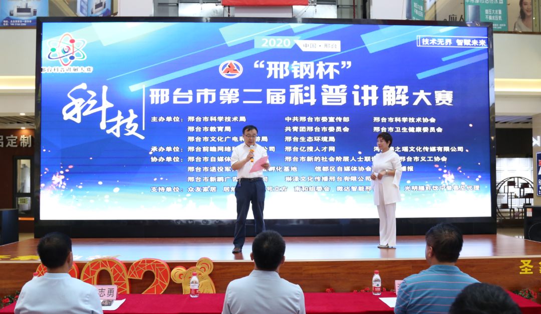 8月15日上午,由邢臺市科學(xué)技術(shù)局、中共邢臺市委宣傳部、邢臺市科學(xué)技術(shù)協(xié)會、邢臺市教育局、共青團(tuán)邢臺市委員會、邢臺市衛(wèi)生健康委員會、邢臺市文化廣電和旅游局、邢臺市生態(tài)環(huán)境局聯(lián)合舉辦的“邢鋼杯”2020邢臺市第二屆科普講解大賽啟動儀式在邢臺眾友家居活動廳舉行。