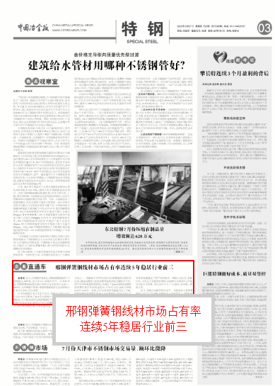 邢鋼彈簧鋼線材市場(chǎng)占有率連續(xù)5年穩(wěn)居行業(yè)前三