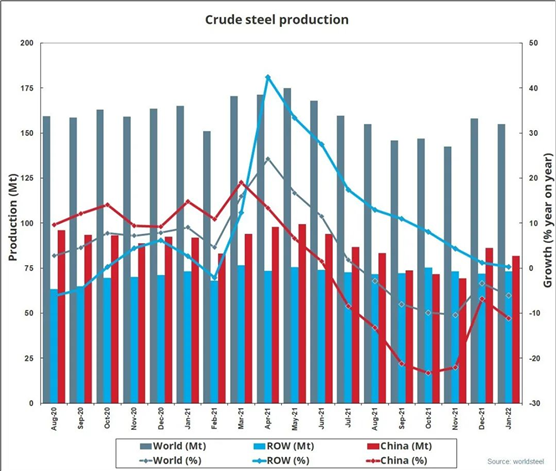 來源:世界鋼鐵協(xié)會 發(fā)布時間:2022年02月25日 點擊數(shù):