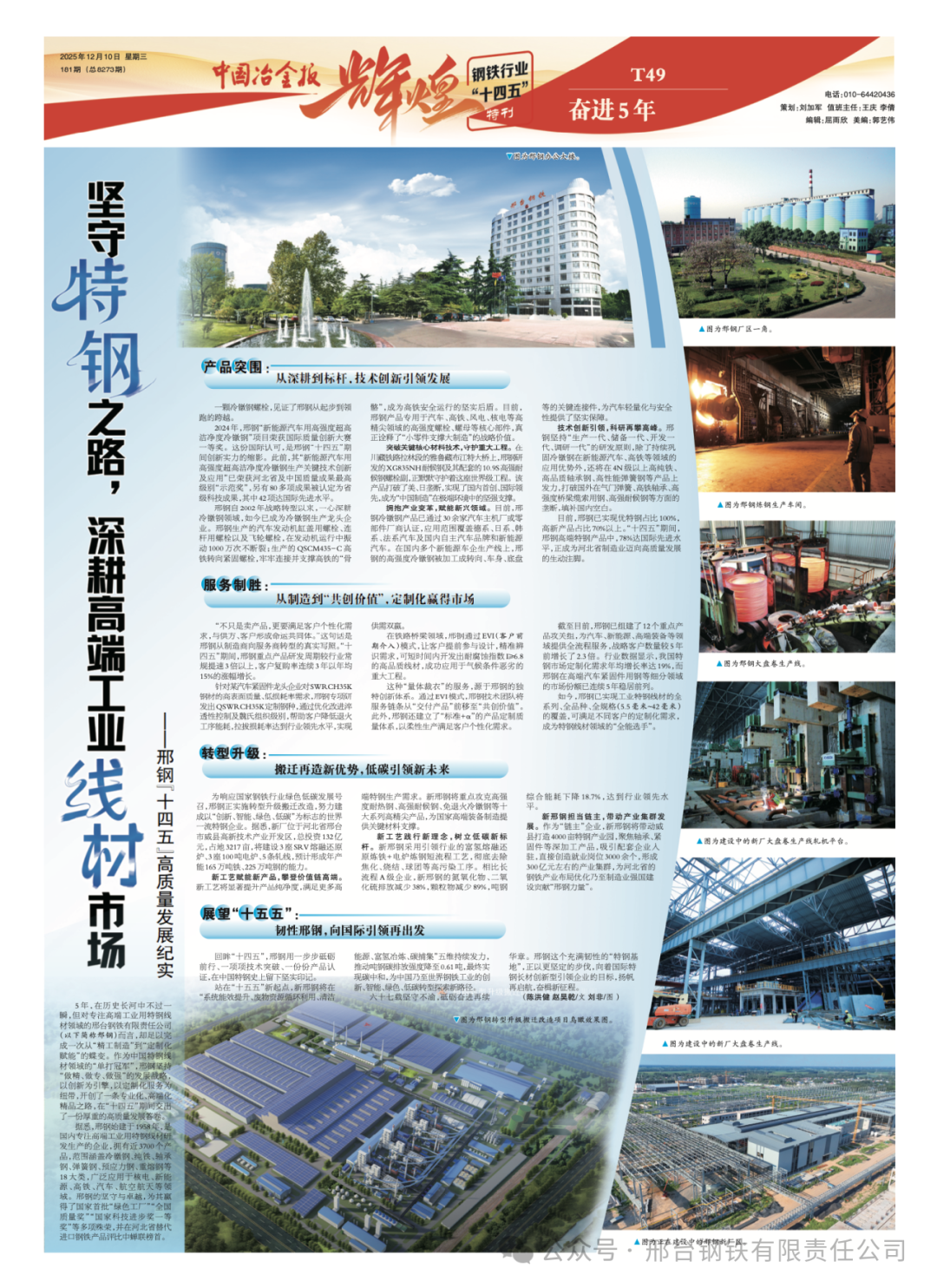 5年,在歷史長河中不過一瞬,但對專注高端工業(yè)用特鋼線材領(lǐng)域的邢臺(tái)鋼鐵有限責(zé)任公司(以下簡稱邢鋼)而言,卻足以完成一次從“精工制造”到“定制化賦能”的蝶變。作為中國特鋼線材領(lǐng)域的“單打冠軍”,邢鋼堅(jiān)持“做精、做專、做強(qiáng)”的發(fā)展戰(zhàn)略,以創(chuàng)新為引擎,以定制化服務(wù)為紐帶,開創(chuàng)了一條專業(yè)化、高端化精品之路,在“十四五”期間交出了一份厚重的高質(zhì)量發(fā)展答卷。